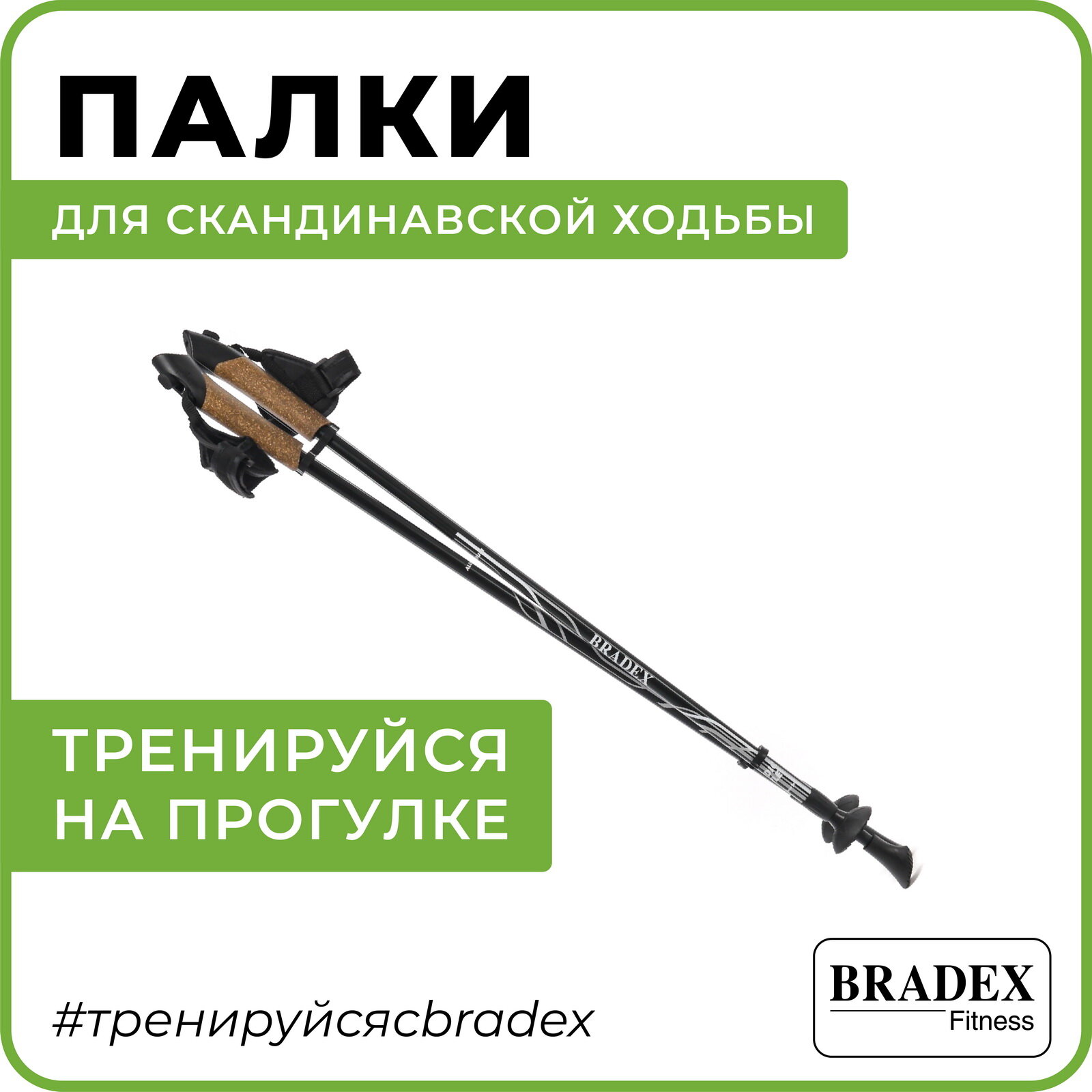Палки для скандинавской ходьбы, Bradex, нордик стайл II, 2 секции, черные