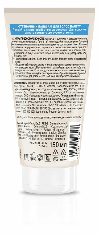 Палетт оттеночный бальзам Платиновый блонд, 150 мл