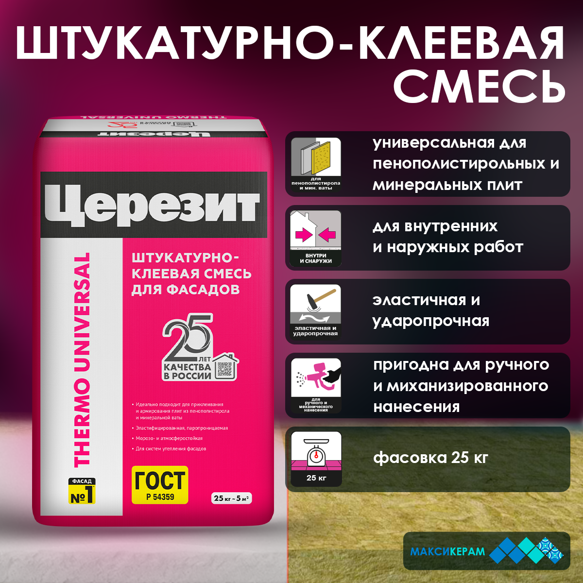 Купить Штукатурно-клеевая смесь для теплоизоляции Церезит Термо Юниверсал 25 кг