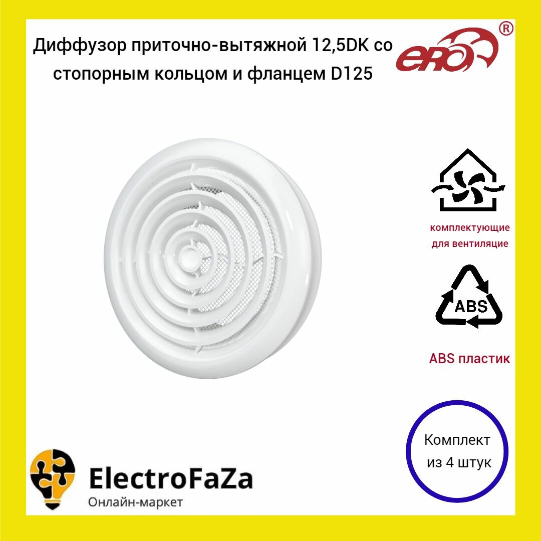 Купить Диффузор приточно-вытяжной со стопорным кольцом и фланцем 125 мм ERA 12.5DK (4шт)