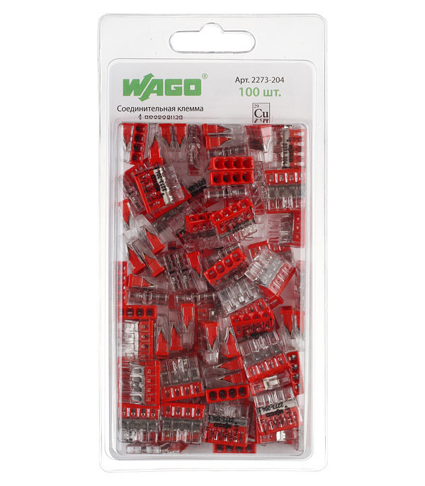 WAGO Соединительная клемма WAGO 4-х проводная (2273-204) 6 шт. в блистере