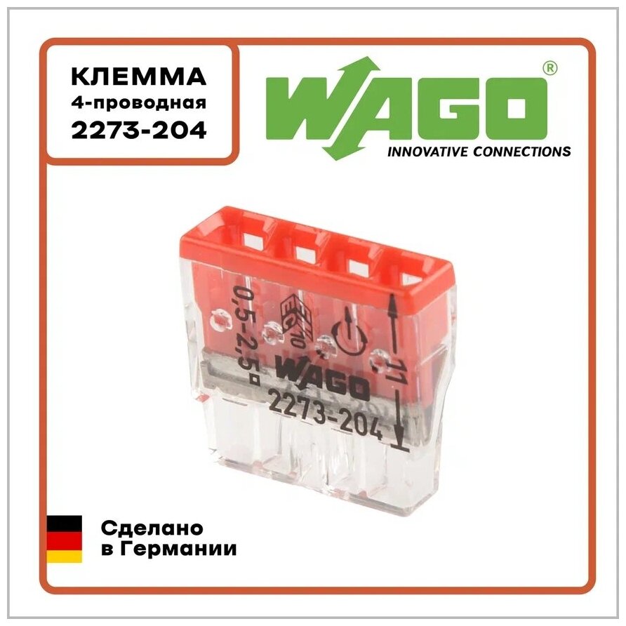 Клемма WAGO 4-х проводная 2273-204 10 шт