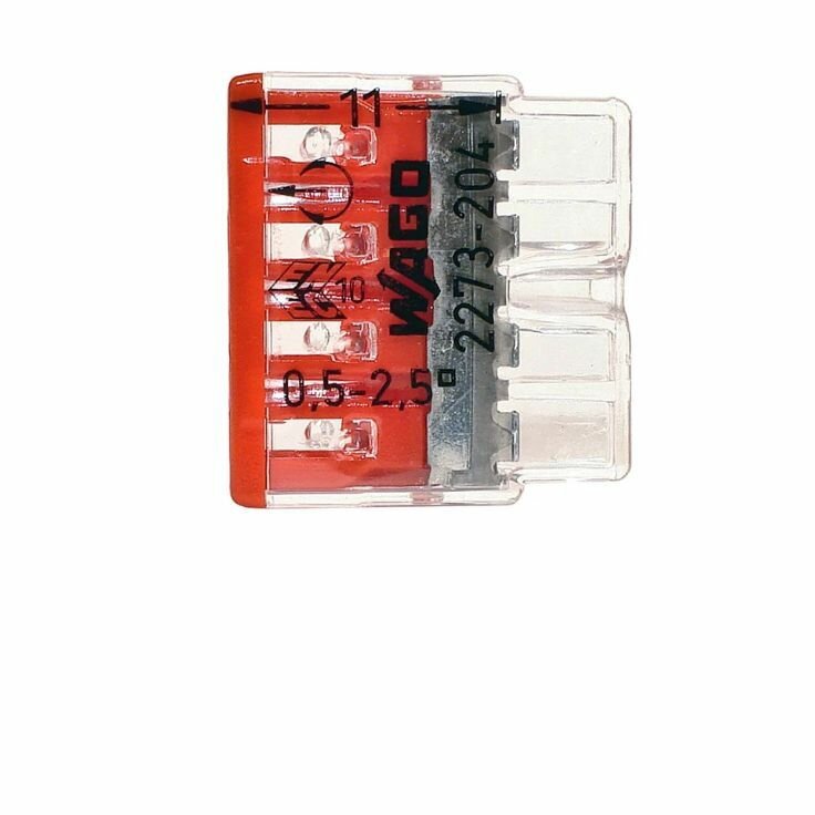 Клемма 4х(0.5-2.5мм) 4-х проводн. для распред. короб. (без п) WAGO 2273-204 ( упак.50шт.)