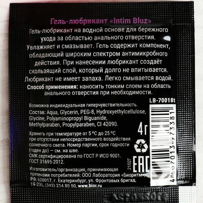 Ниже Вы можете прочитать отзывы на Интимный гель- смазка Ты и Я Intim Bluz, лубрикант на водной основе, анальный, 4 мл, 2 штуки, ознакомится с подробными характеристиками, посмотреть интересные обзоры и фотографии на Интимный гель- смазка Ты и Я Intim Bluz, лубрикант на водной основе, анальный, 4 мл, 2 штуки.