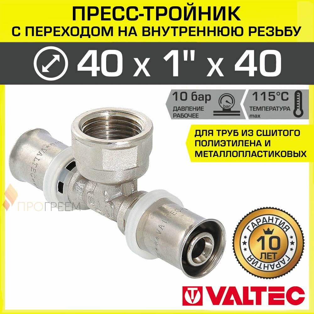 Тройник пресс с переходом на внутреннюю резьбу 40х1"х40 VALTEC VTm.232.N.400640