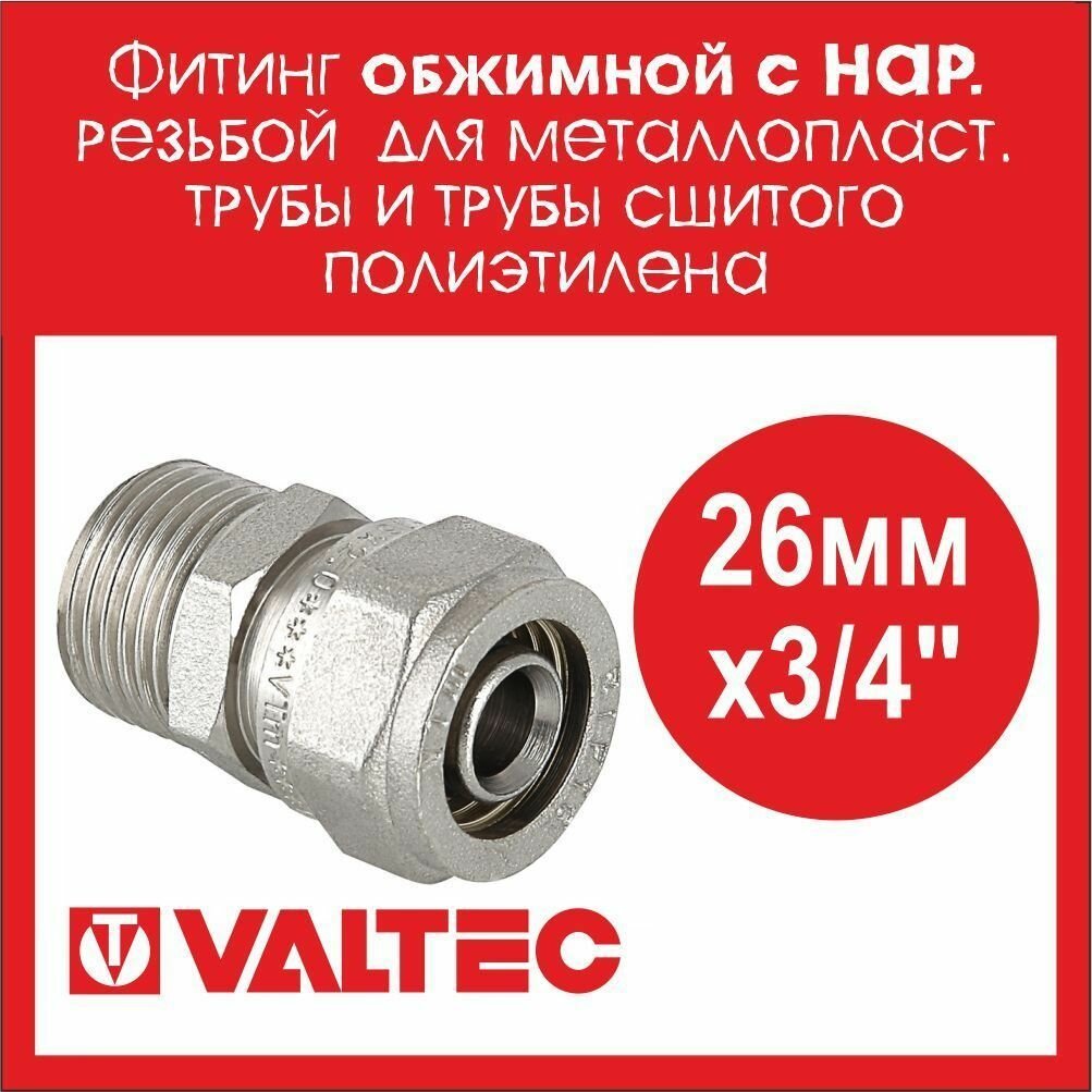 Купить Фитинг обжимной с нар. резьбой VALTEC 26х3/4 VTm.301.N.002605 - 2 шт.