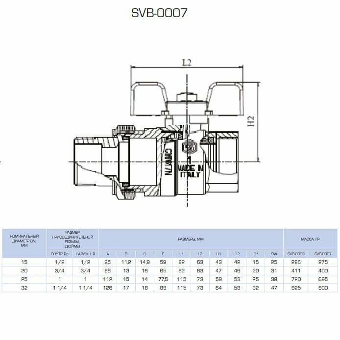 SVB-0008-000025 STOUT Кран шаровой полнопроходной угловой с “американкой“, ВР/НР, ручка бабочка 1