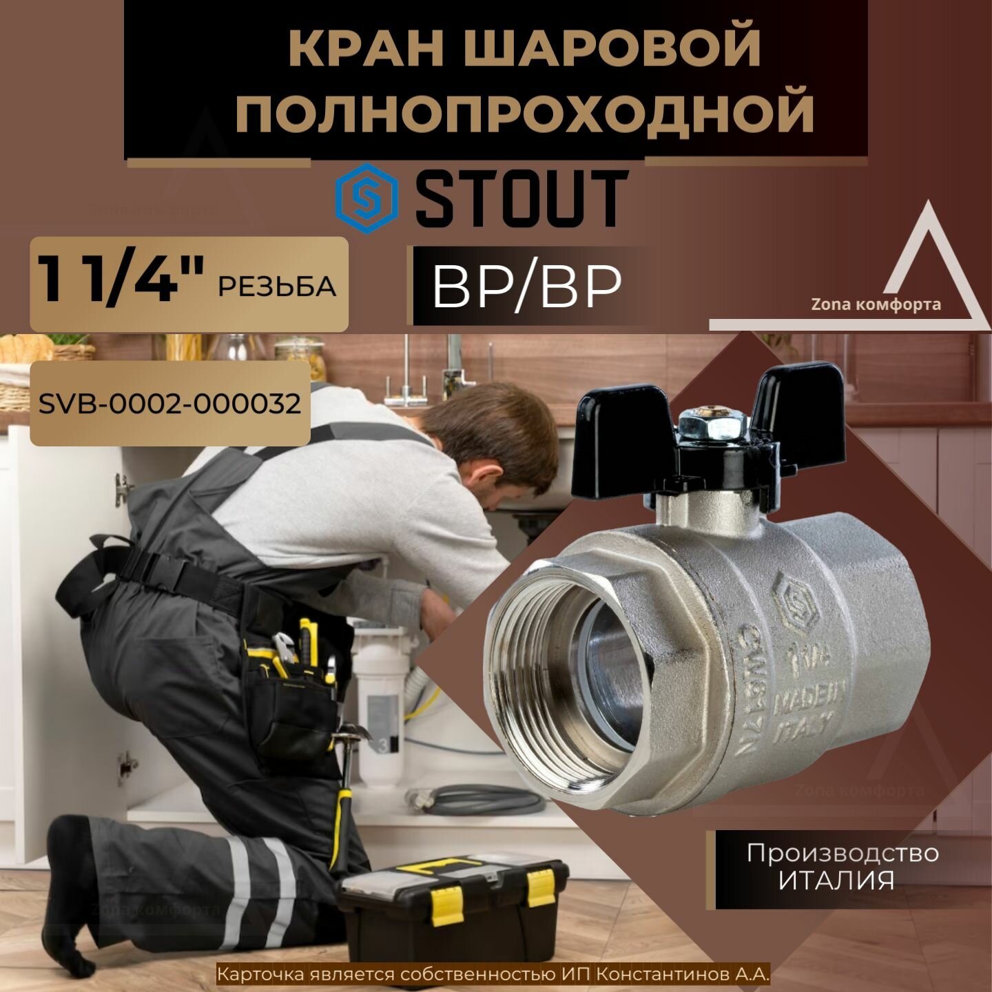 SVB-0002-000032 STOUT Кран шаровой полнопроходной, ВР/ВР, ручка бабочка 1 1/4