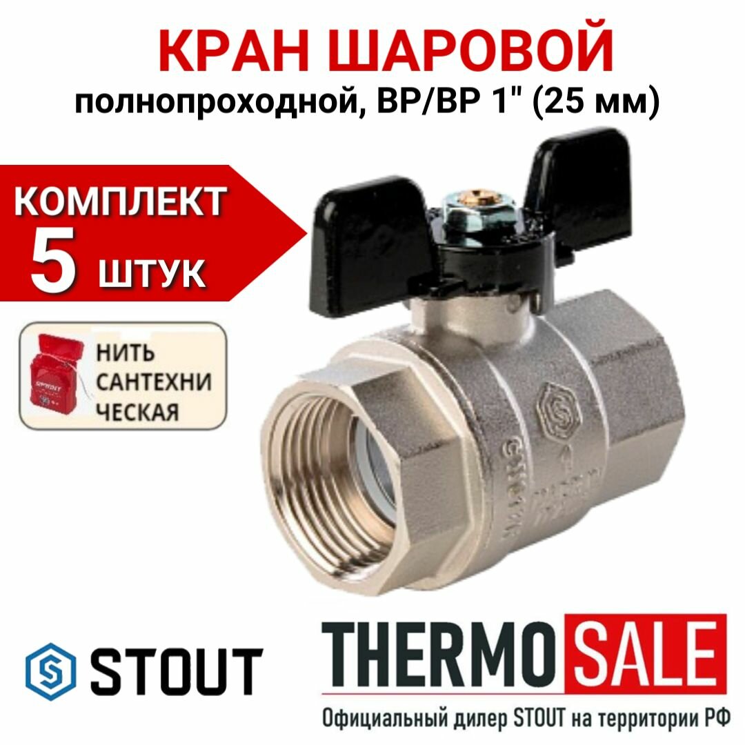 Кран шаровой полнопроходной, ВР/ ВР, бабочка, 1" STOUT SVB-0002-000025