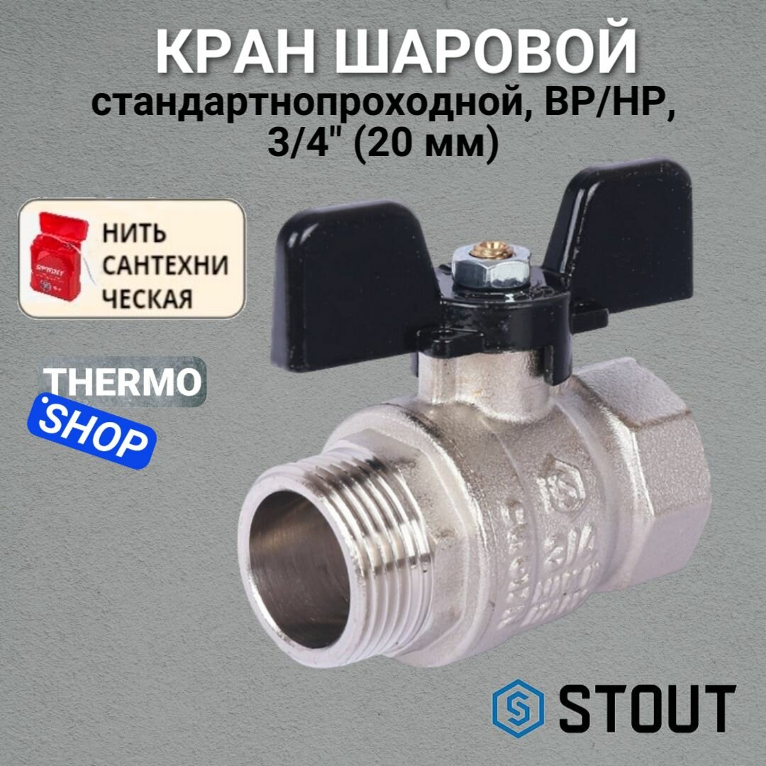 SVB-0014-000020 STOUT Кран шаровой стандартнопроходной, ВР/НР, ручка бабочка 3/4"
