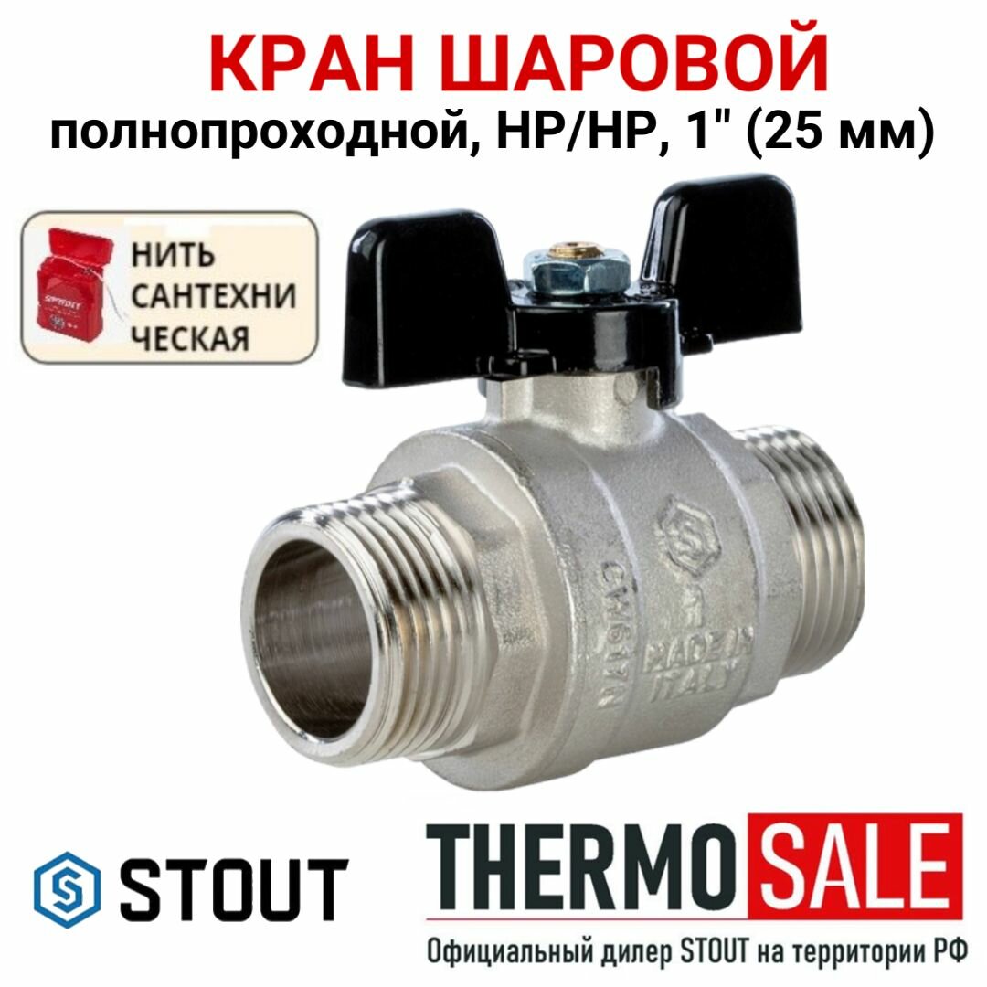 Кран шаровой STOUT полнопроходной, НР/НР 1" (ручка бабочка), art. SVB-0006-000025