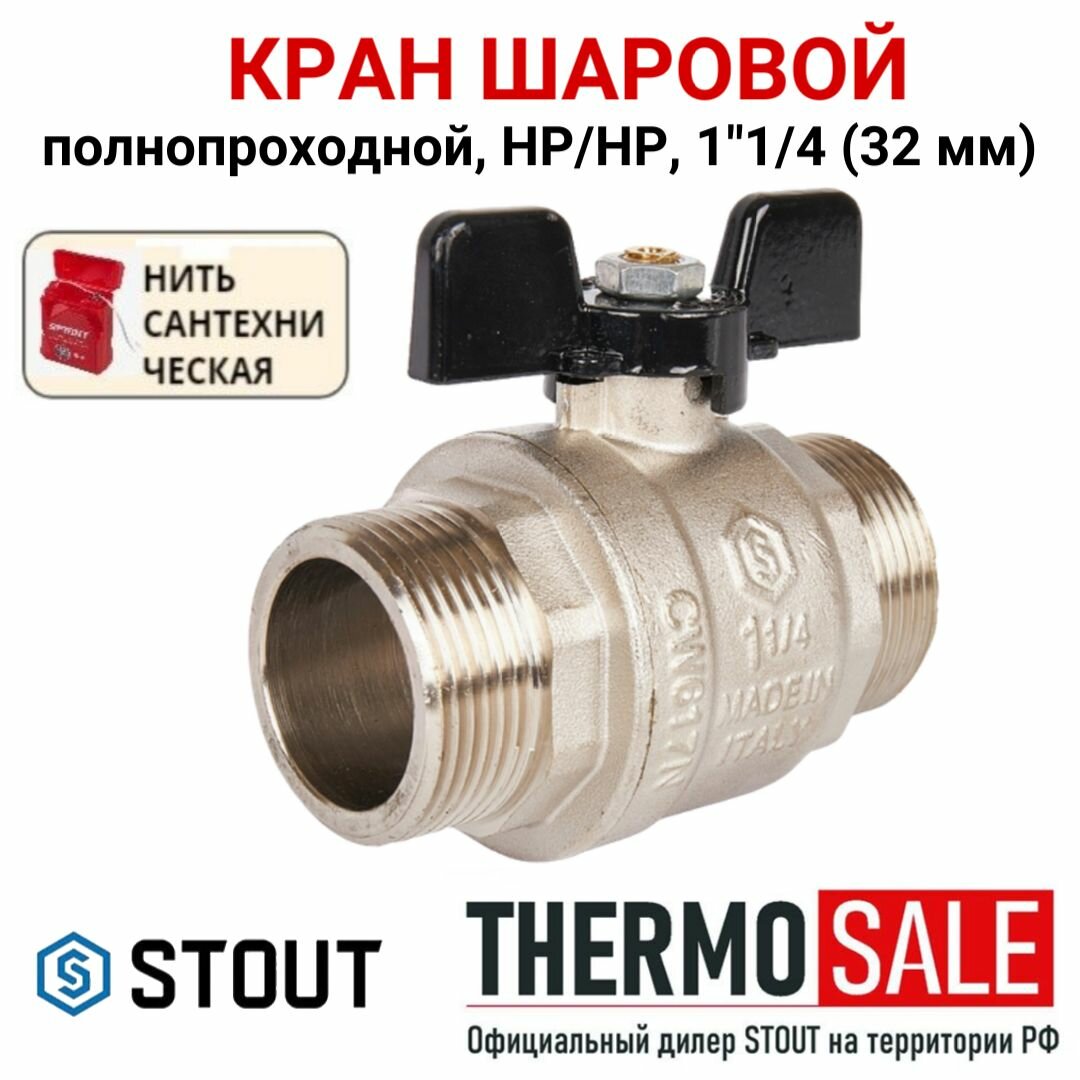 SVB-0006-000032 STOUT Кран шаровой полнопроходной, НР/НР, ручка бабочка 1 1/4