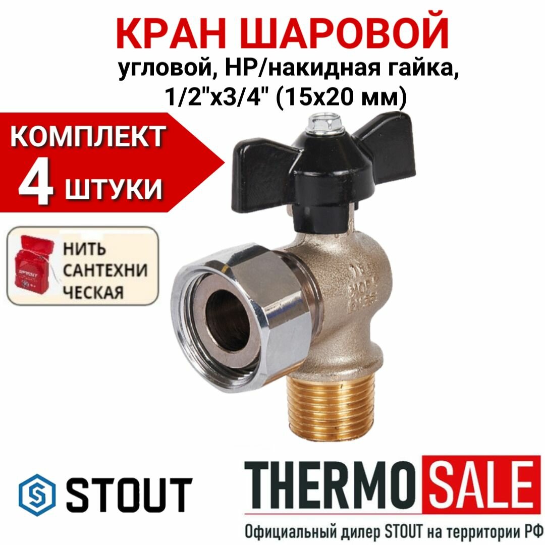 Stout Кран шаровой угловой, НР/накидная гайка 3/4x3/4 SVB-0010-000020 .