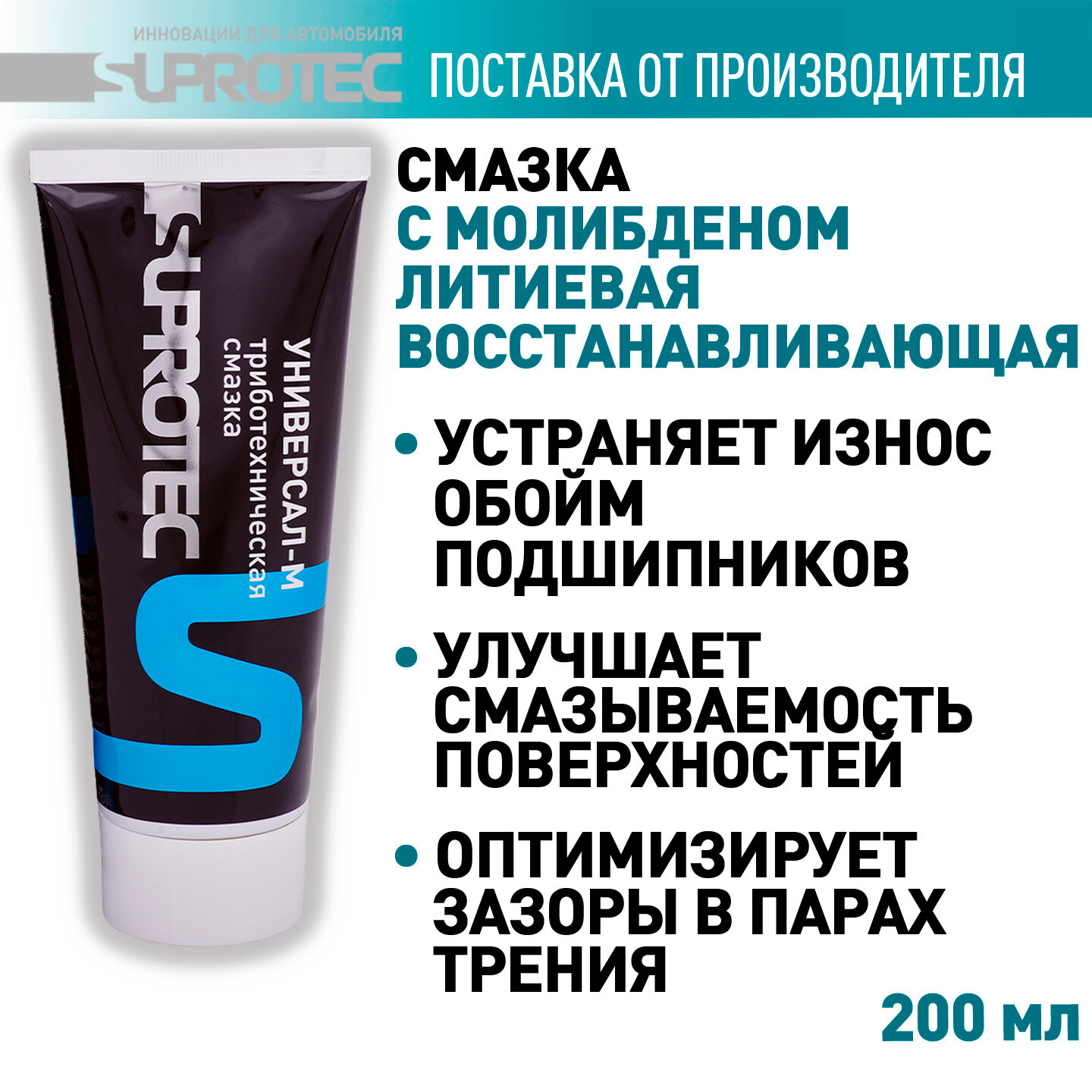 Смазка Универсал-М литиевая восстанавливающая пластичная, с молибденом, для шрусов, подшипников и шарниров, Супротек 200мл