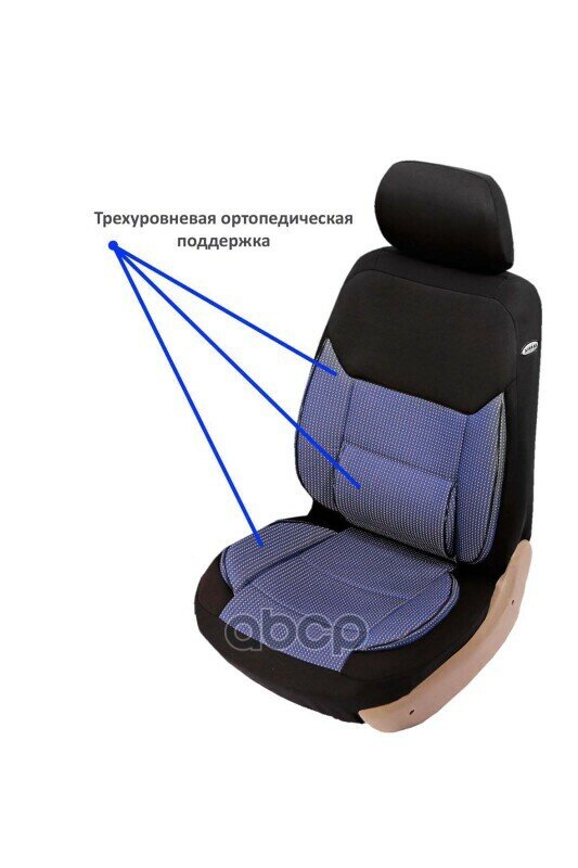 Чехол На Сиденье "Azard" Senator Жаккард California, Размер M, Ортопед.поддержка 3+ Уровня, 11 Пр., Карман, 6 Молний /Синий/ ...