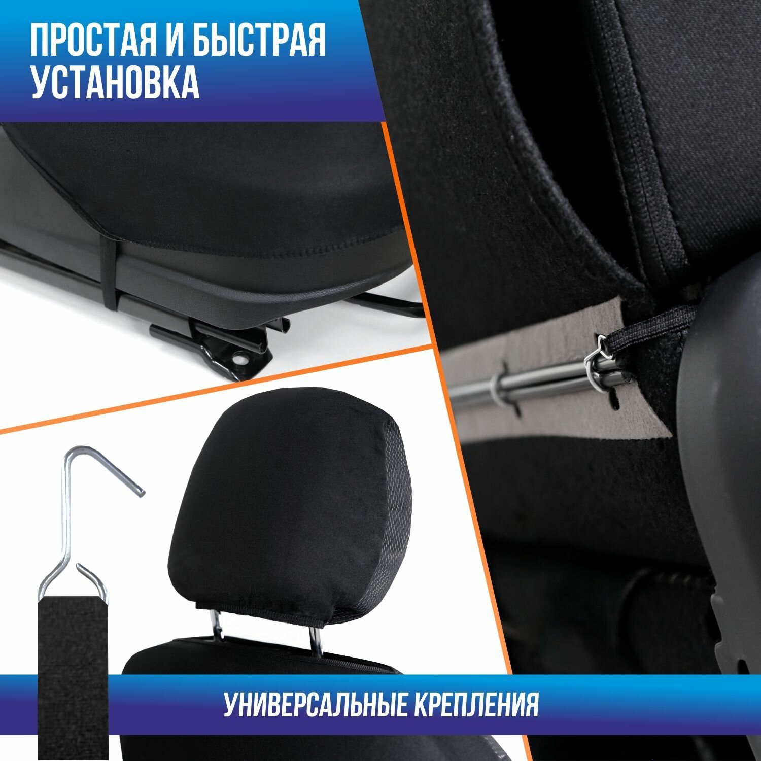 Комплект каркасных чехлов 5D CarFashion Consul Plus, чёрные, отстрочка серая