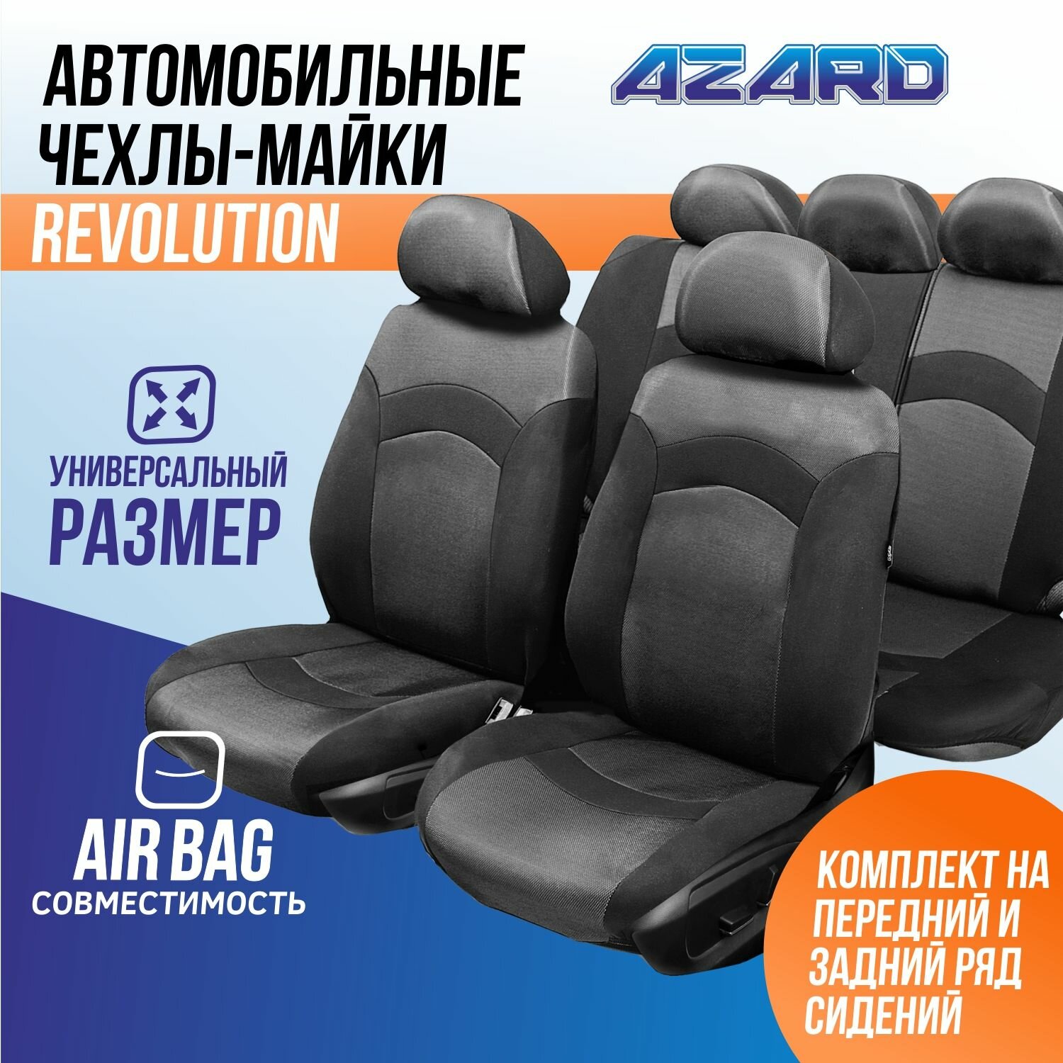 Купить Чехлы-майка на сиденья REVOLUTION /черно-серебряный/ полный с молнией AZARD MAI00040