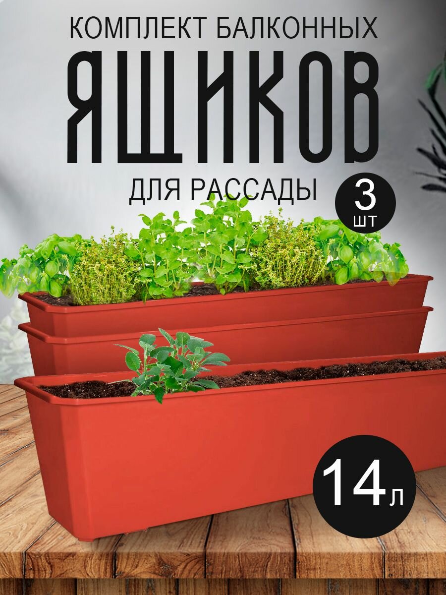 Балконный ящик для рассады и цветов пластиковый 14 л 3 шт, терракотовый
