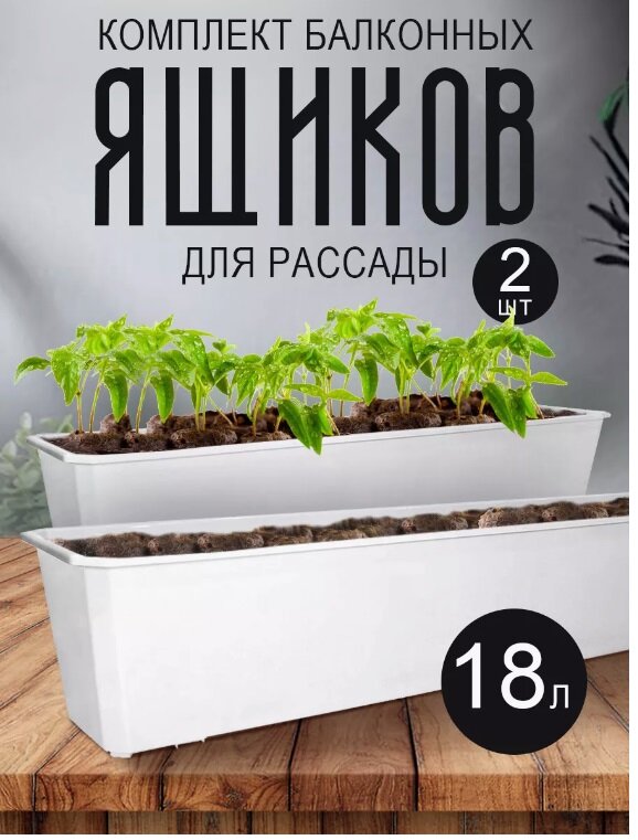 Купить Балконный ящик для рассады и цветов пластиковый 18л 2шт, белый