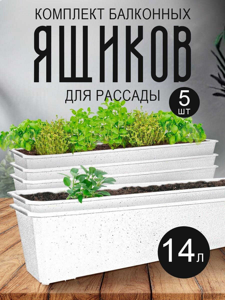 СохранитьБалконный ящик для рассады и цветов пластиковый 14 л 5шт, мраморный интересное: