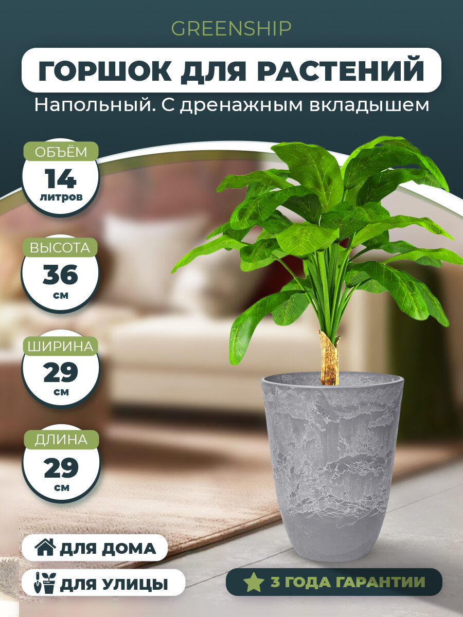 СохранитьВысокое напольное кашпо для растений GreenShip, 15 л., цвет светло-серый интересное: