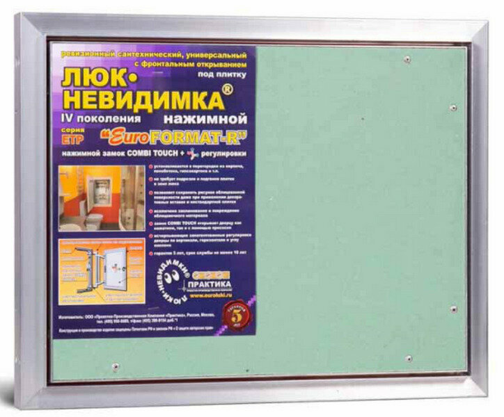 СохранитьЛюк ревизионный под плитку EuroFORMAT-R алюминиевый 500х400 мм скрытый нажимной интересное: