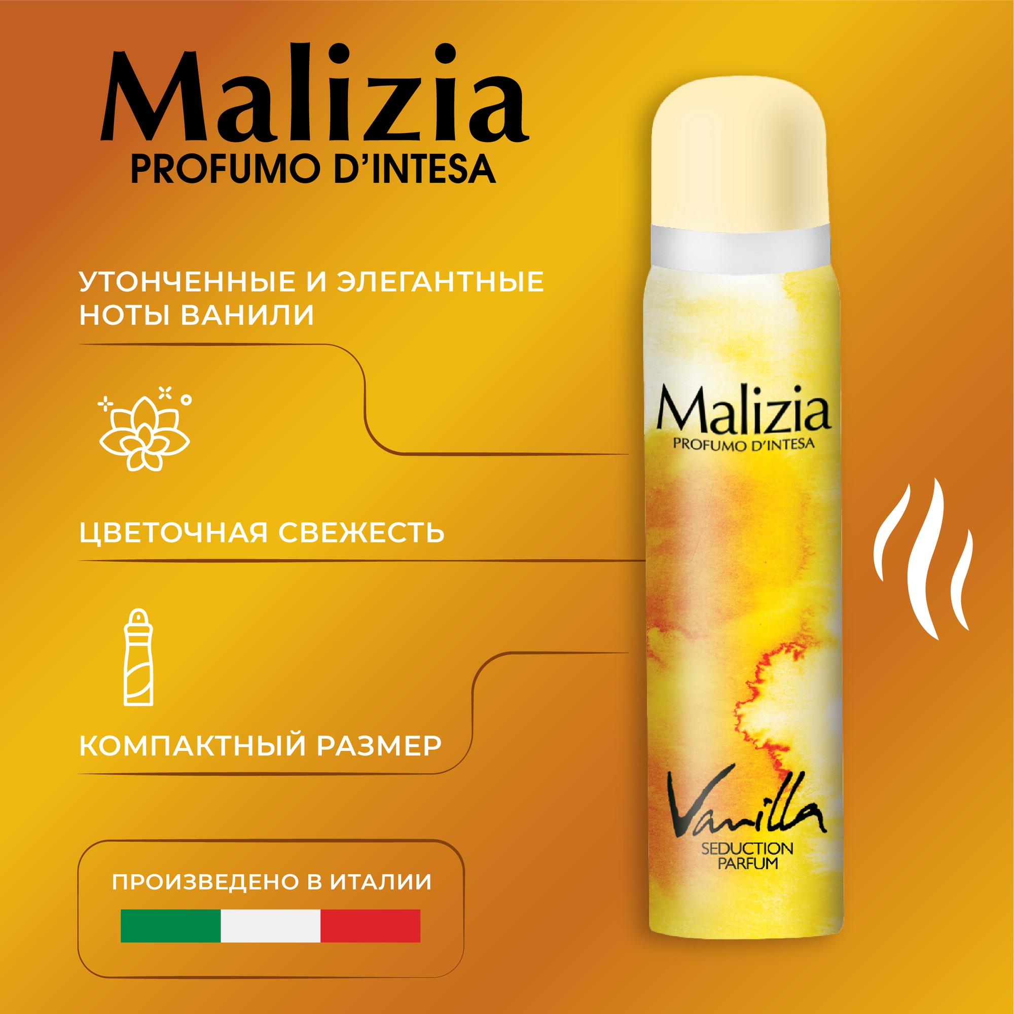 Купить Malizia Дезодорант женский парфюмированный для тела в аэрозольной упаковке Vanilla 100 мл