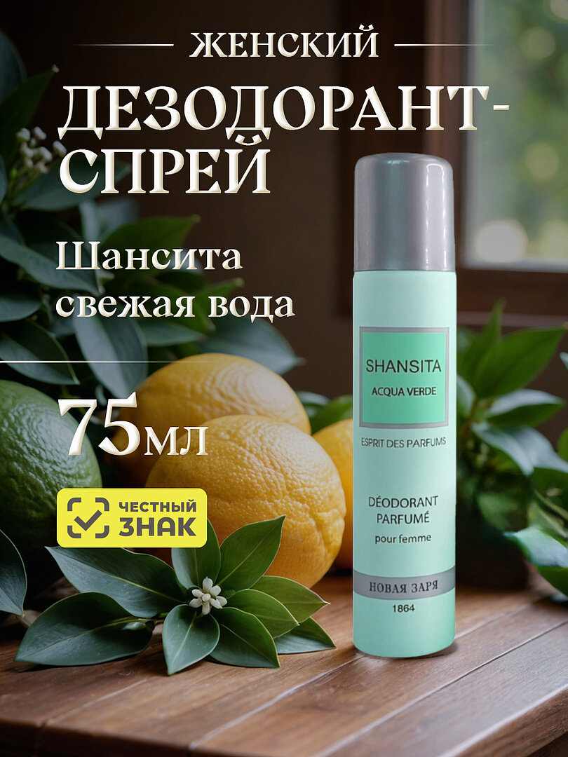 Новая Заря Женский Шансита Свежая вода (Shansita Acqua Verde) Дезодорант-спрей (spray) 75мл