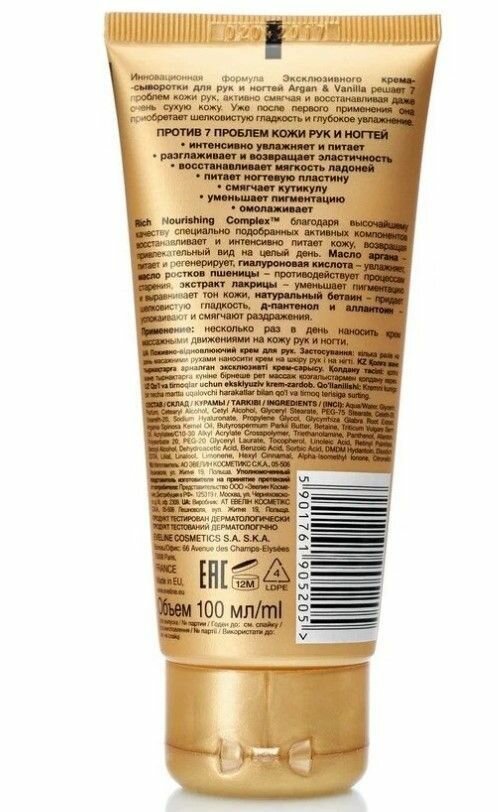 Крем-сыворотка для рук EVELINE «ARGAN&VANILLA PROFESSIONAL», эксклюзивный, 100мл