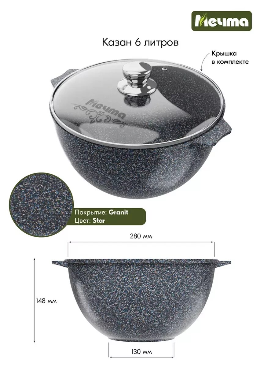 Казан для плова Мечта 8 л Гранит с антипригарным покрытием с крышкой, НЕ индукционный