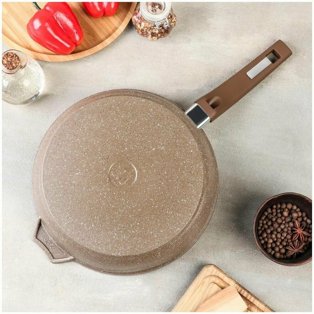 Сковорода Мечта 28 см Гранит с антипригарным покрытием с несъемной ручкой и крышкой, НЕ индукционная