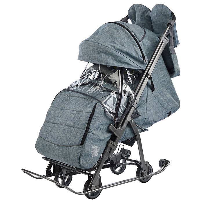 Санки-коляска SNOW GALAXY Kids-3-3-С Джинс серый на больших колесах+сумка+варежки интересное: