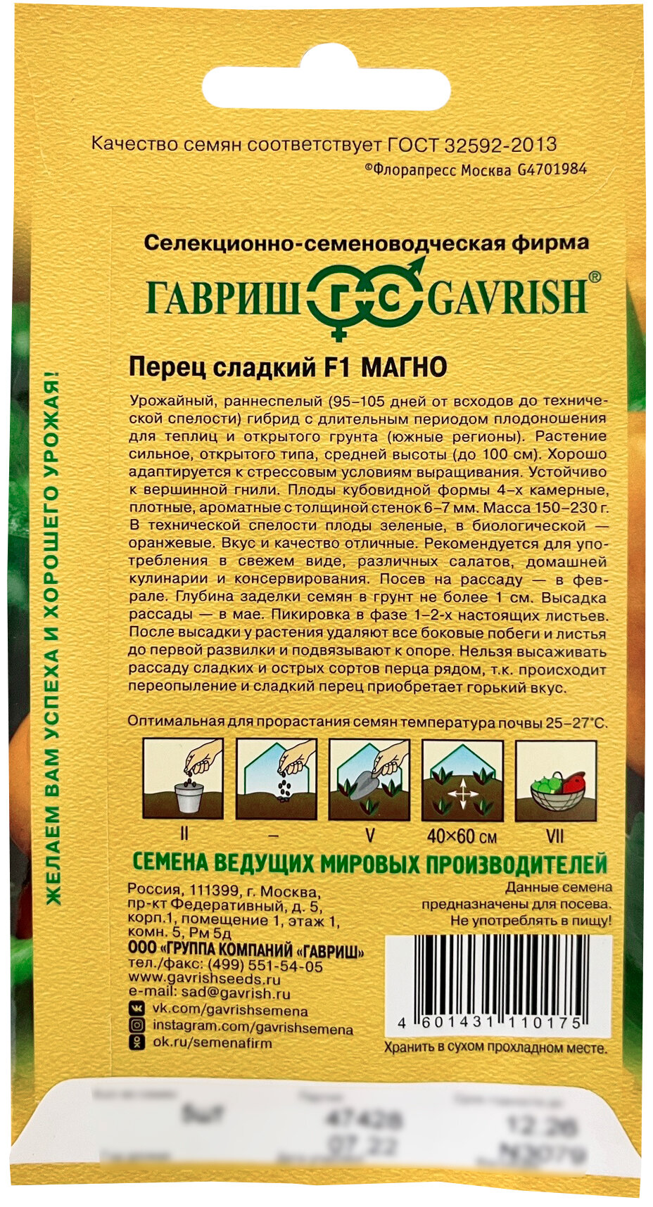СохранитьСемена, Гавриш, Перец, Магно F1, 5 семян, Голландия в наборе интересное: