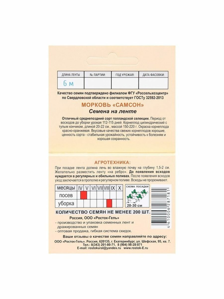 СохранитьСемена Морковь "самсон" Семена на ленте, 6 М интересное: