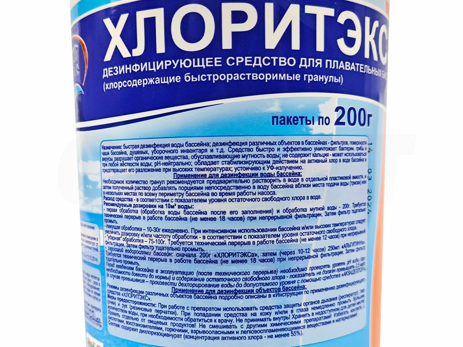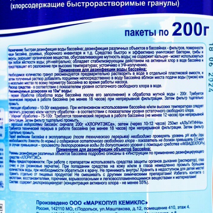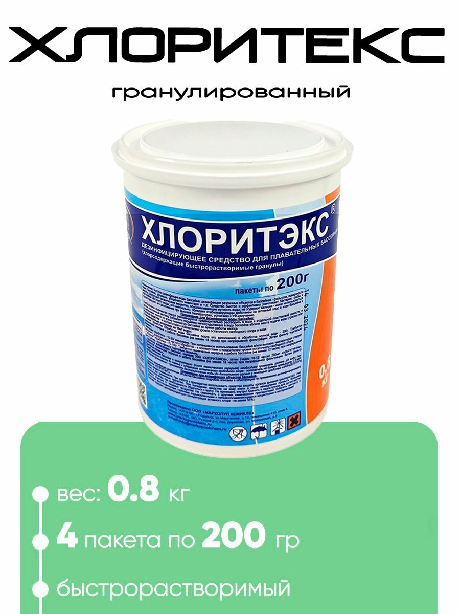Хлор для бассейна Хлоритэкс 200 гр, гранулы для очистки воды Маркопул кемиклс