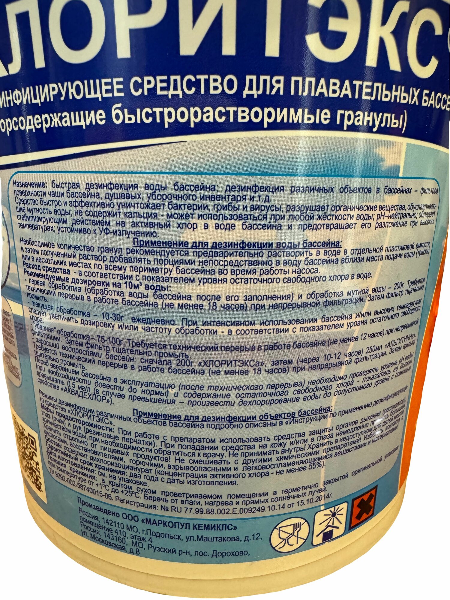 Хлор для бассейна Хлоритэкс 200 гр, гранулы для очистки воды Маркопул кемиклс
