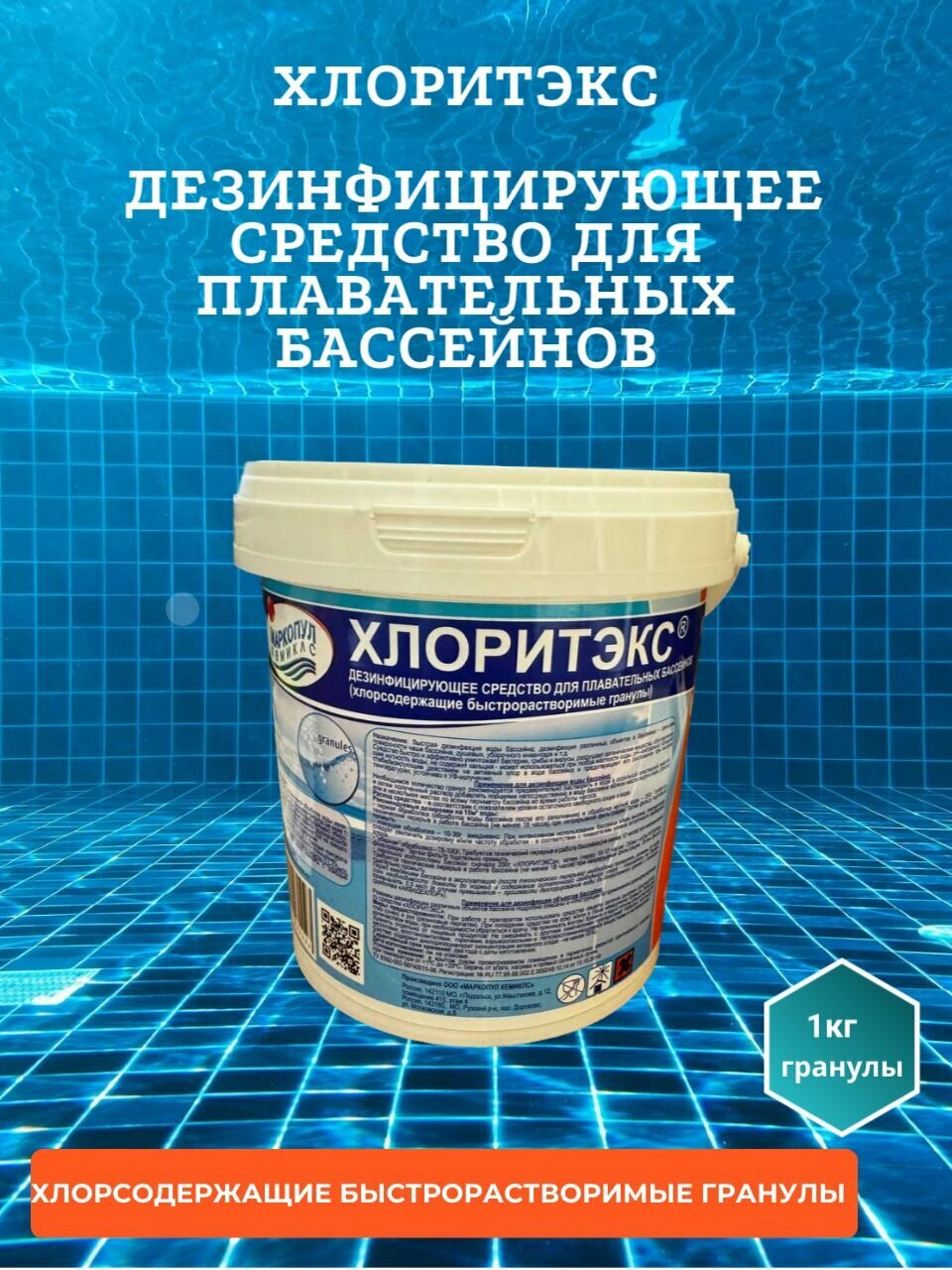 Средство для бассейна Маркопул Хлоритэкс, дезинфекция 1кг, арт. ХИМ04