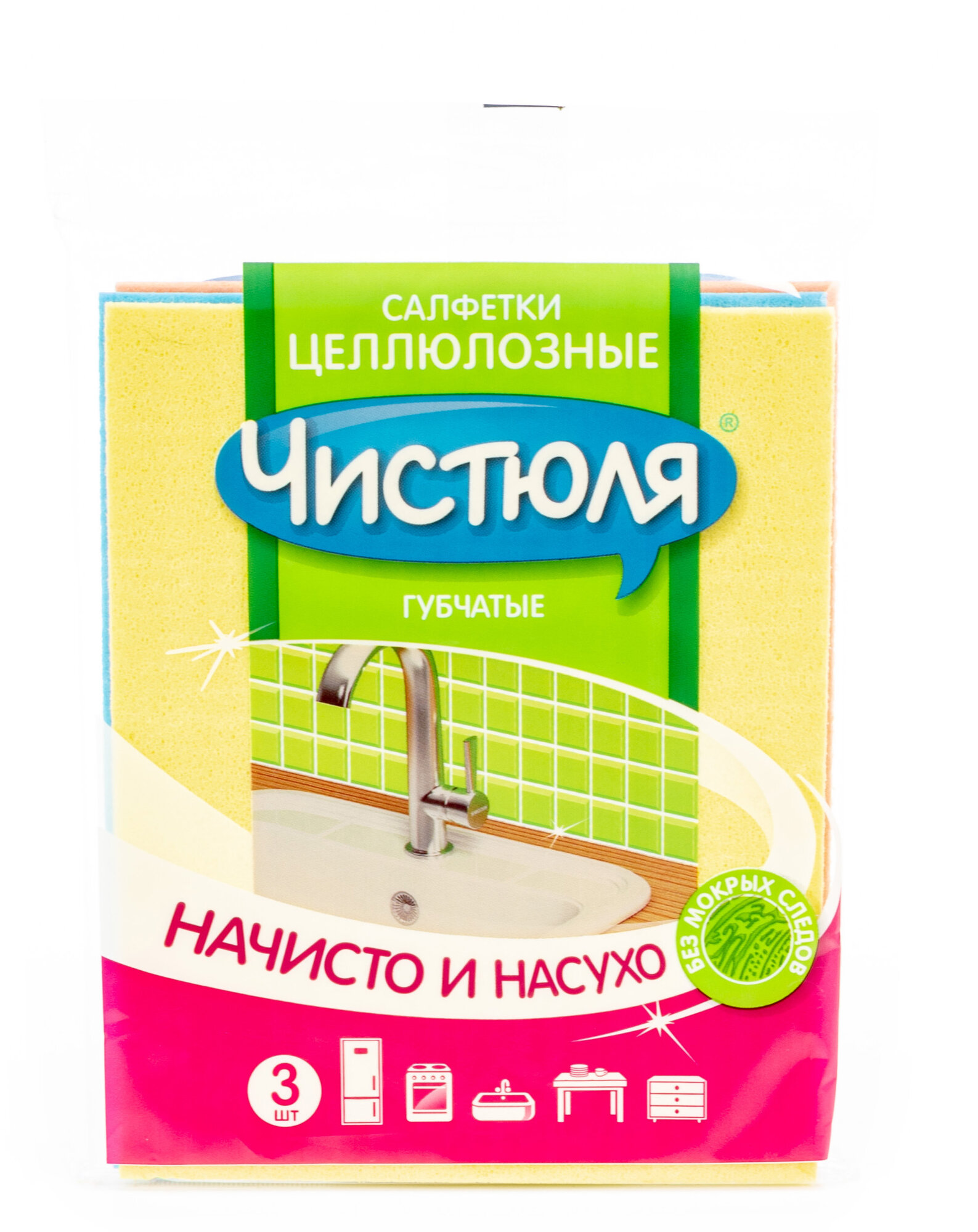 Салфетка для уборки чистюля целлюлозная 15x18 см 3 шт