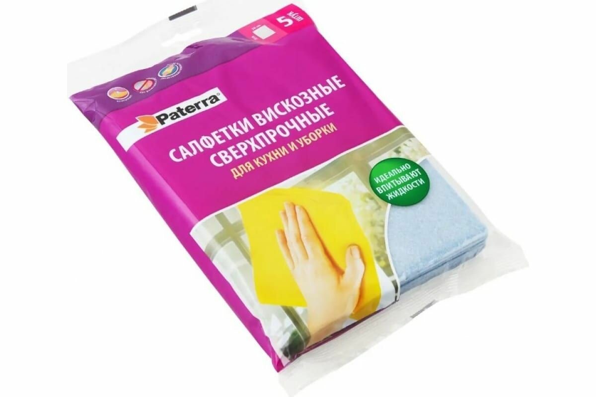 Салфетки вискозные «сверхпрочные» для кухни и уборки, 30 х 38 см, 5 шт. в упаковке, PATERRA