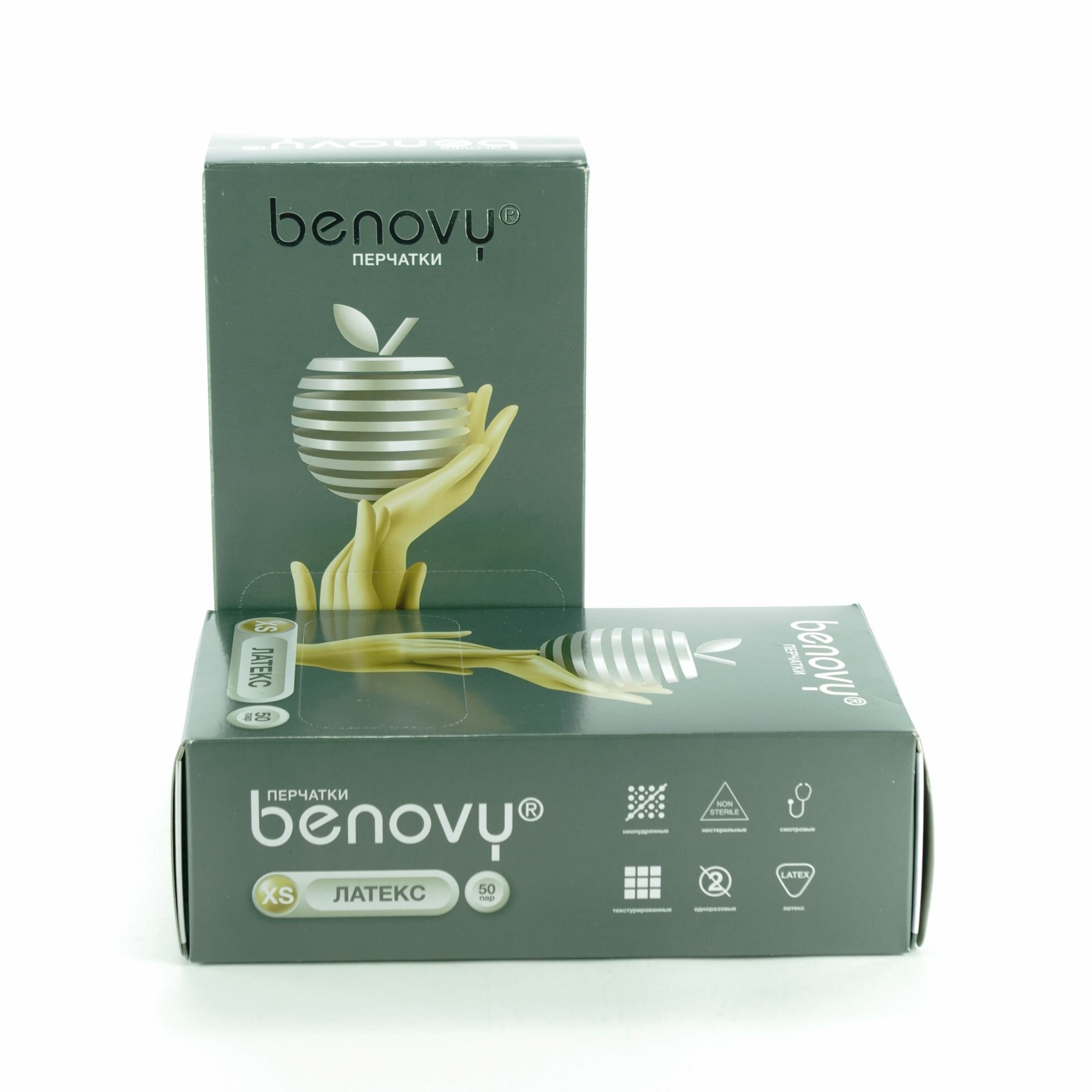 Benovy Latex Powdered - Бинови Перчатки латексные опудренные, цвет натуральный, M, 50 пар/уп -
