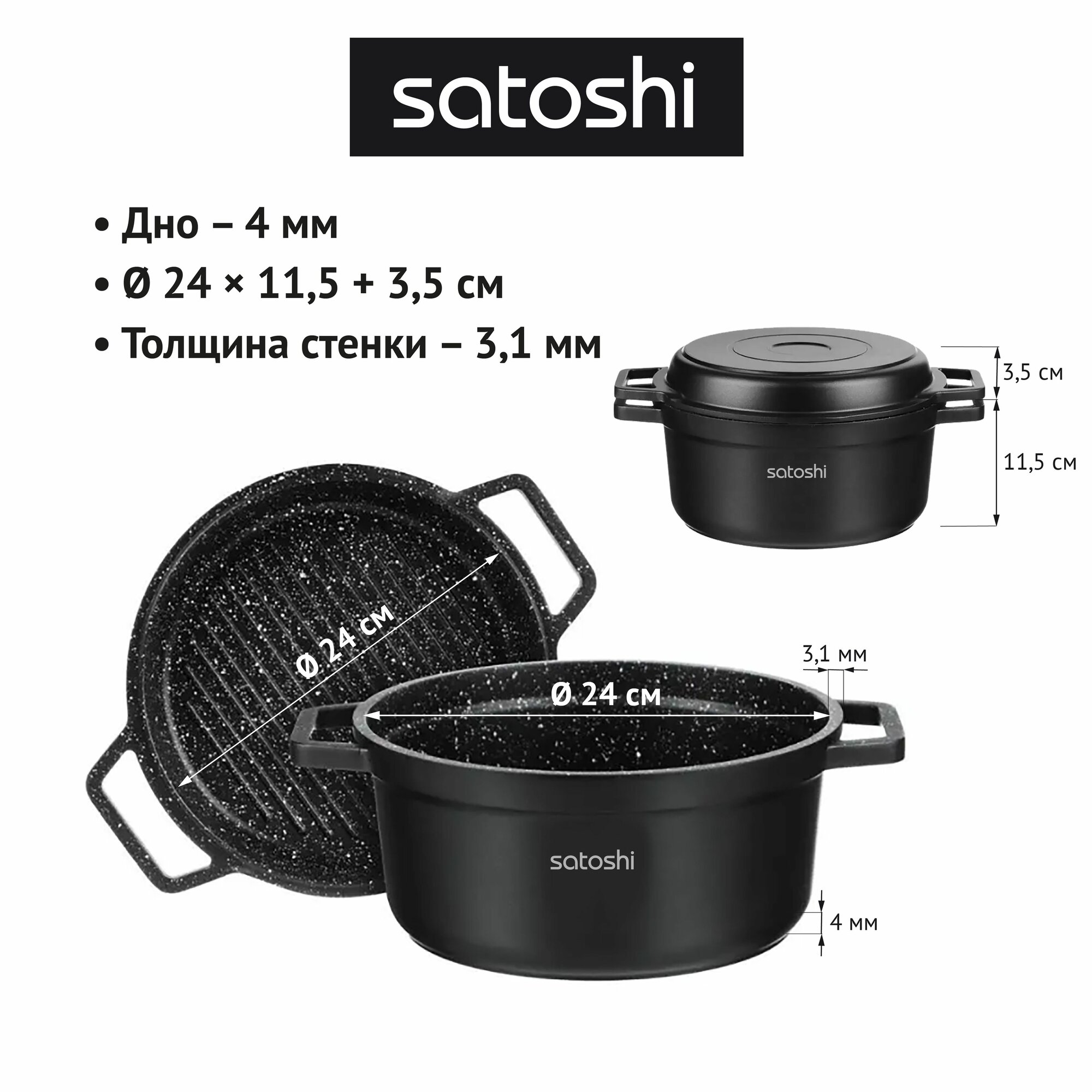 SATOSHI Cheget Казан с крышкой-сковородой, литой, антипригарное покрытие 2,6 литра