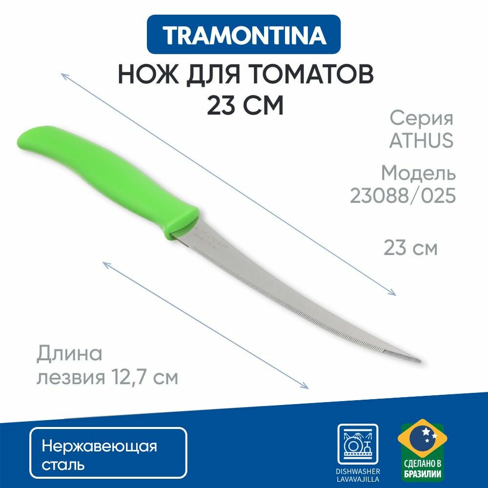 Tramontina Нож кухонный для помидоров/цитрусовых Athus, лезвие 12,5 см, сталь AISI 420, цвет зелёный