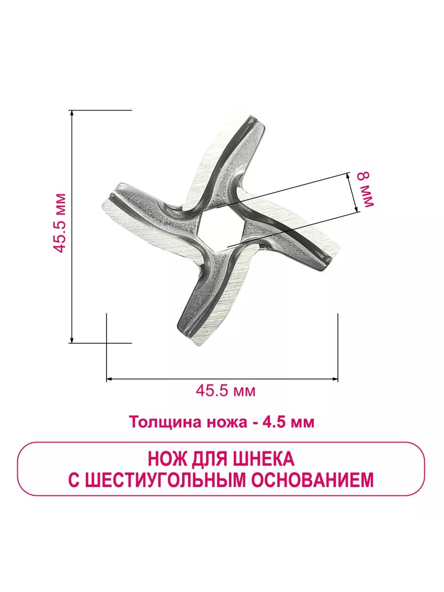 Нож для шнека мясорубки и комбайнов с шестиугольным основанием