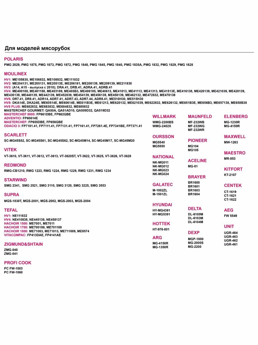 - Аксессуары для мясорубок, кухонных комбайнов, блендеров и миксеров
