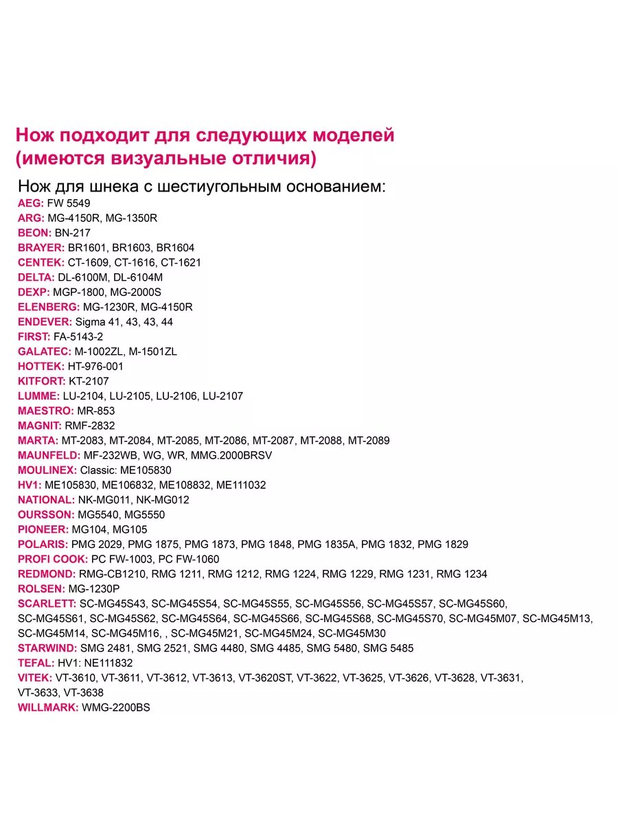 | Отзыв: | Долго искал и наконец нашел нож на мясорубку Moulinex. Подходит на ME206181, хоть ее и нет в списке. |