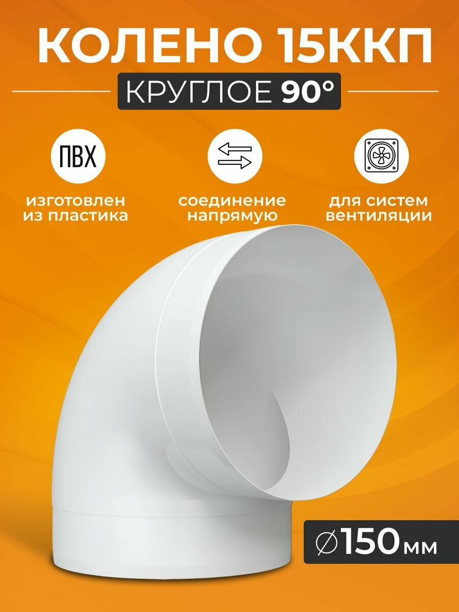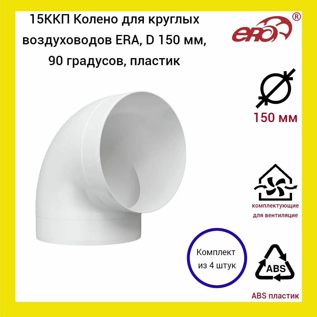 Купить 15ККП Колено для круглых воздуховодов ERA, D 150 мм, 90 градусов, пластик, (3 шт.)