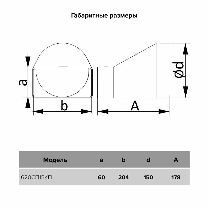 Соединитель эксцентриковый плоского воздуховода с круглым 620СП15КП, пластик, 60 х204 мм/ D 150