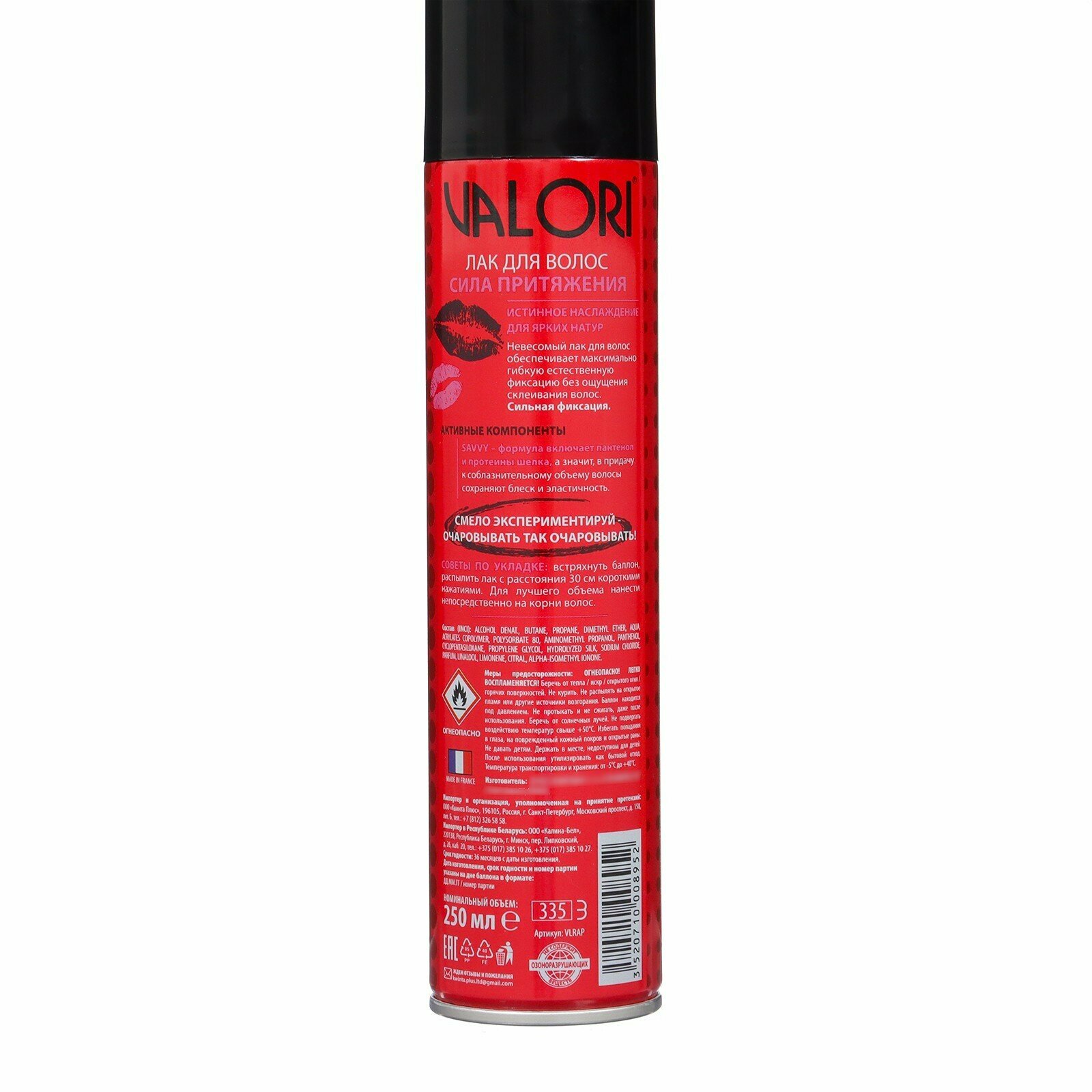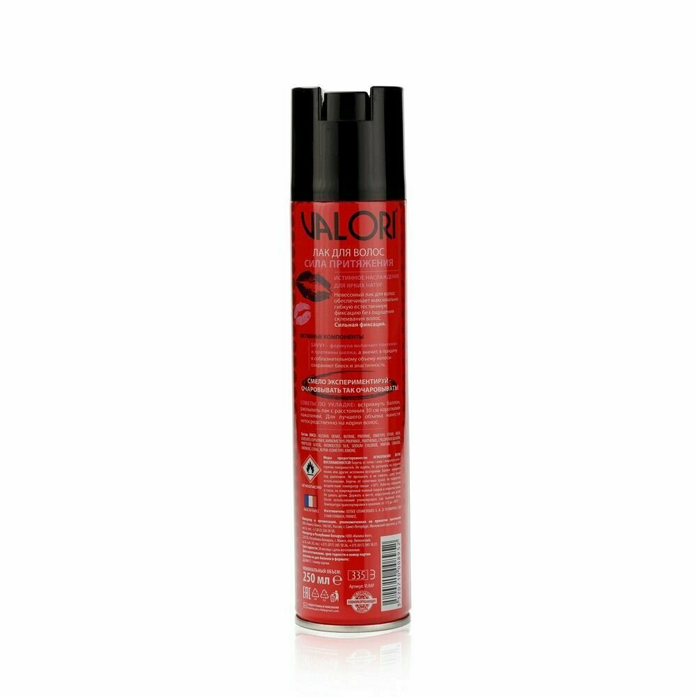 VALORI Лак для укладки волос Сила притяжения, сильная фиксация, 242 г, 250 мл