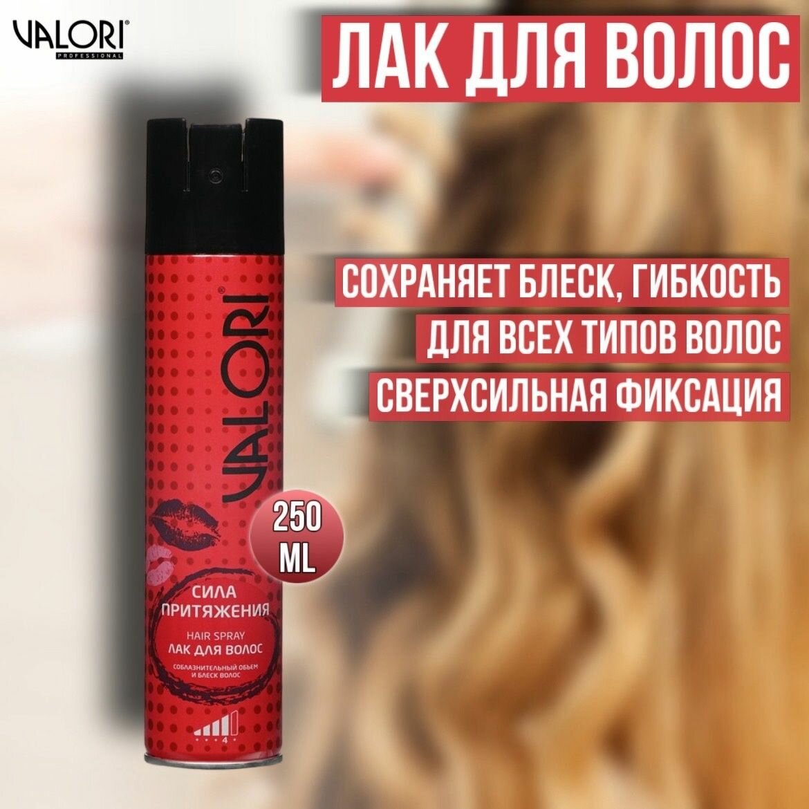 Купить Лак для укладки волос Valori " Сила притяжения " Сверхсильная фиксация (4) 250мл