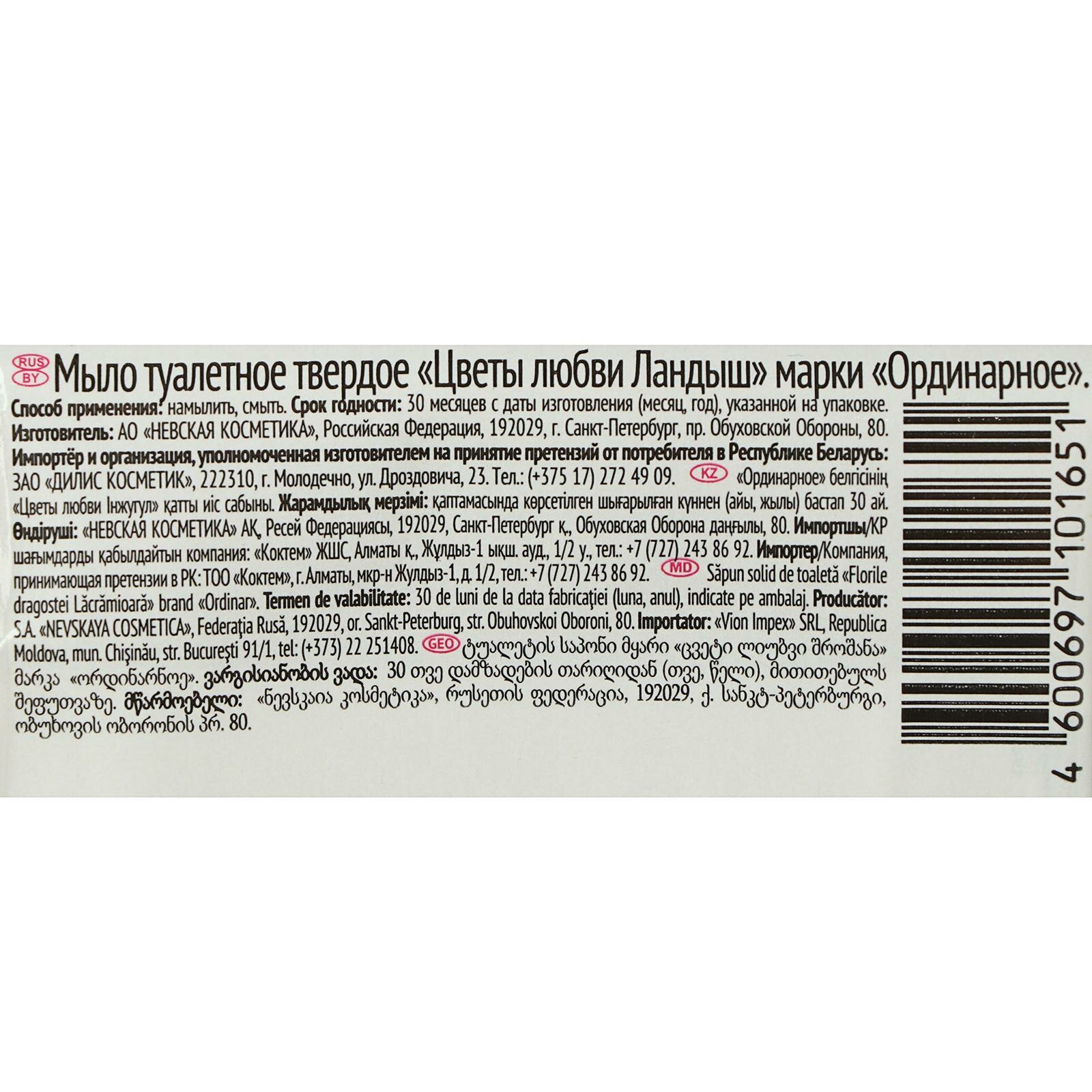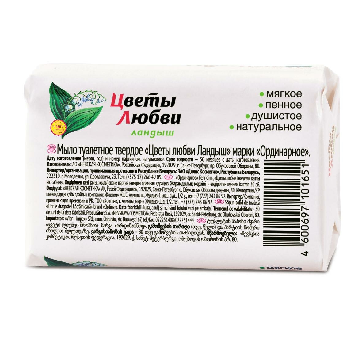 Мыло туалетное, Невская косметика, цветы любви, ландыш, 90 г, 6 шт